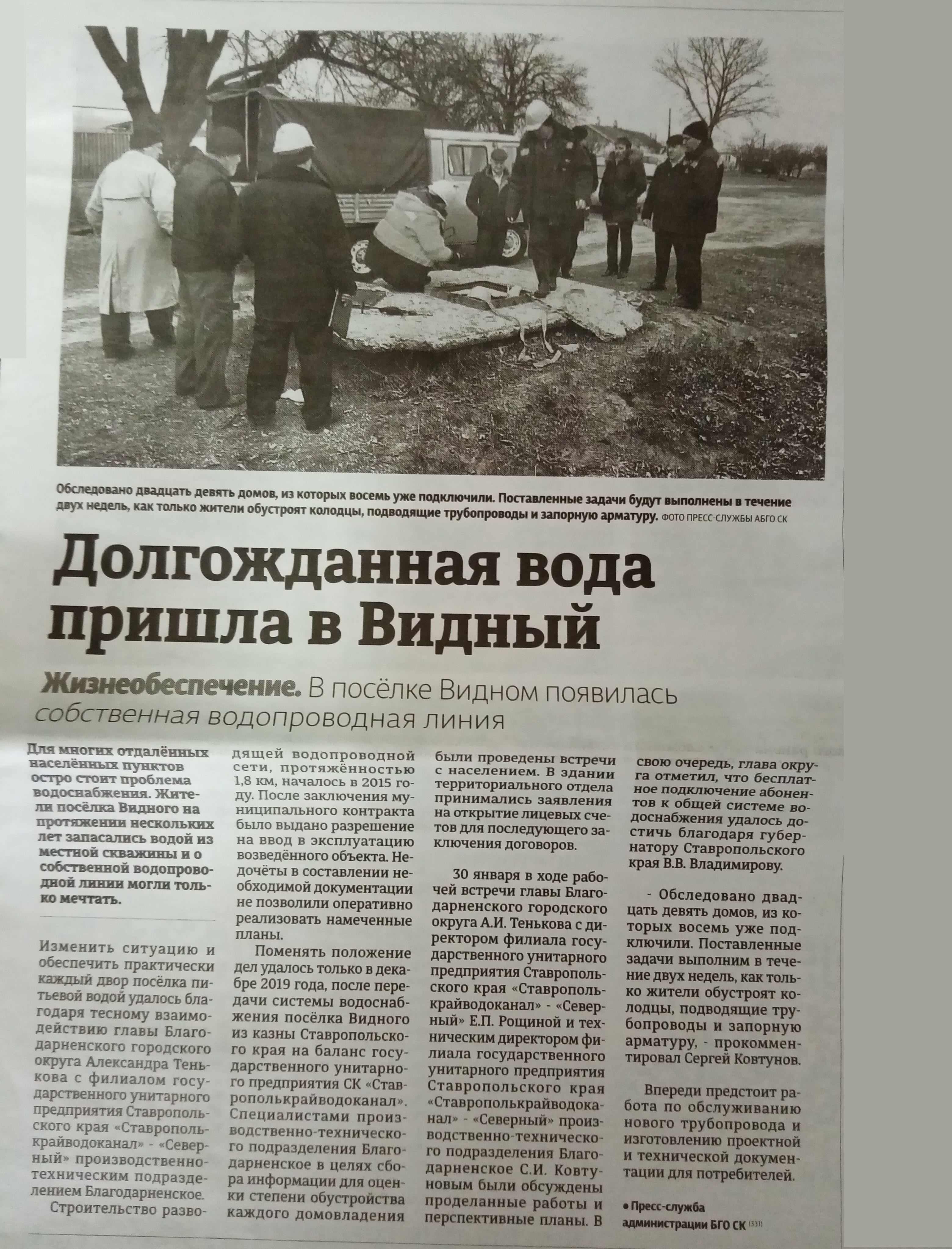 Публикация взята с газеты Благодарненские Вести №8 от 5 февраля 2020 года.